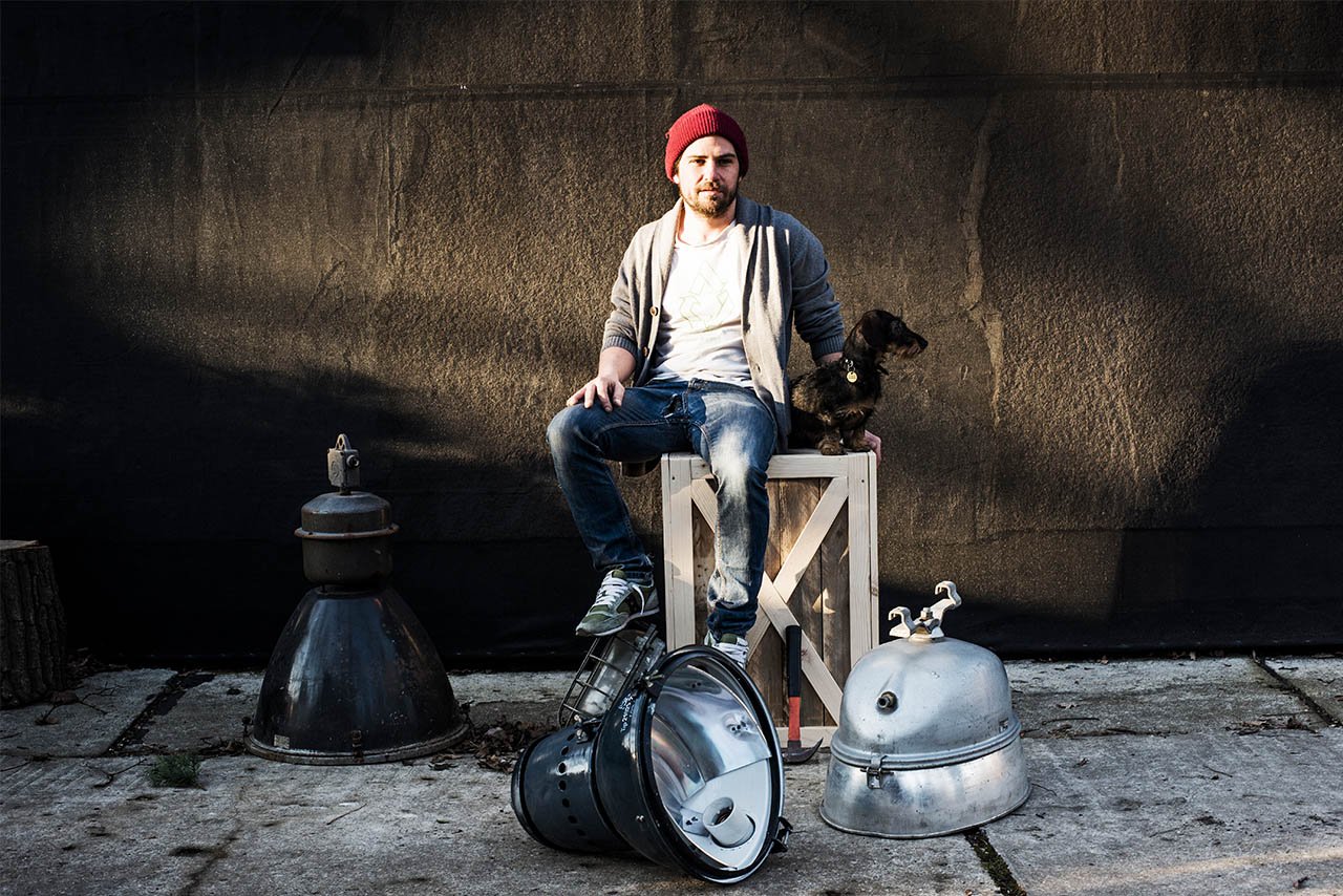 Matyas Szaplonczai of Busho Studio Budapest collects vintage industrial lighting.