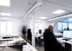 In Combilume, LED technology is really in its element. The modern light technology and side-emitting light diodes result in pleasant, even surfaces both for individual office work stations and for large rooms where people come together.