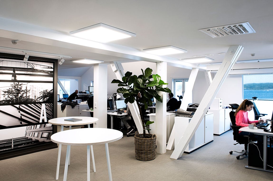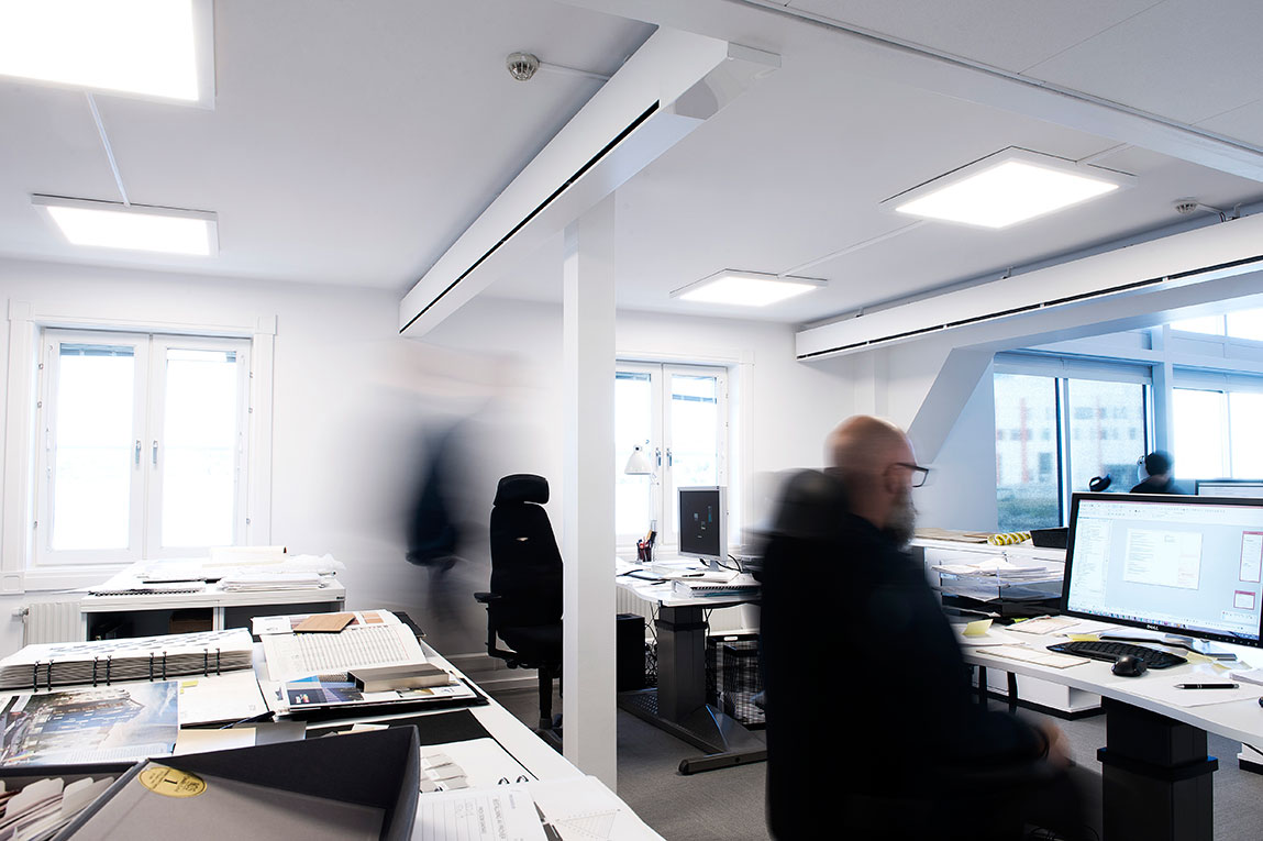 In Combilume, LED technology is really in its element. The modern light technology and side-emitting light diodes result in pleasant, even surfaces both for individual office work stations and for large rooms where people come together.