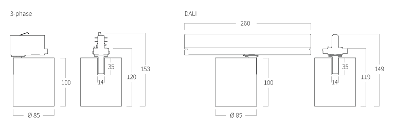 37149 Streamer 37149A spotlight for installation on lighting tracks. Compact format, for applications with lower ceiling height.