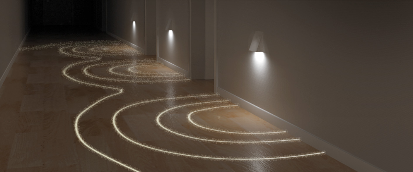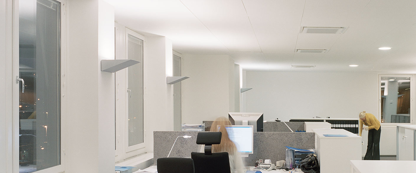 5541 Wall 5541A wall luminaire that distributes light downwards/outwards. The distinct design and the small dimensions make Wall LED a good choice for corridors.