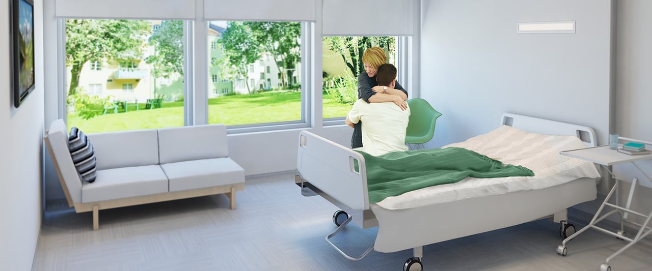 Aluflex 600 provides reading light and a supplementary examination light at the head-end of the patient’s bed. Based on energy-efficient LED technology the well shielded light is framed with a stylish aluminium profile.