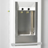 The profiles are manufactured from extruded aluminium. Cover plates, braces and gas outlet bracket in alu-zinc sheet. Sink in acid-proof stainless steel. All visible surfaces are available in white enamelled (RAL 9010) as standard, but alternative colour finishes are available at an additional charge. The column has smooth external faces that facilitate cleaning.