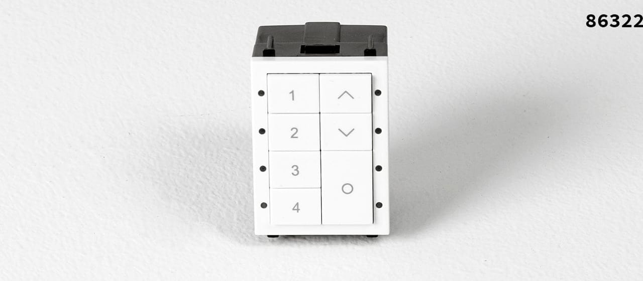 DIGIDIM 135W – Scene module with 7 buttons: 4 scenes as well as dim up/down and off button.
