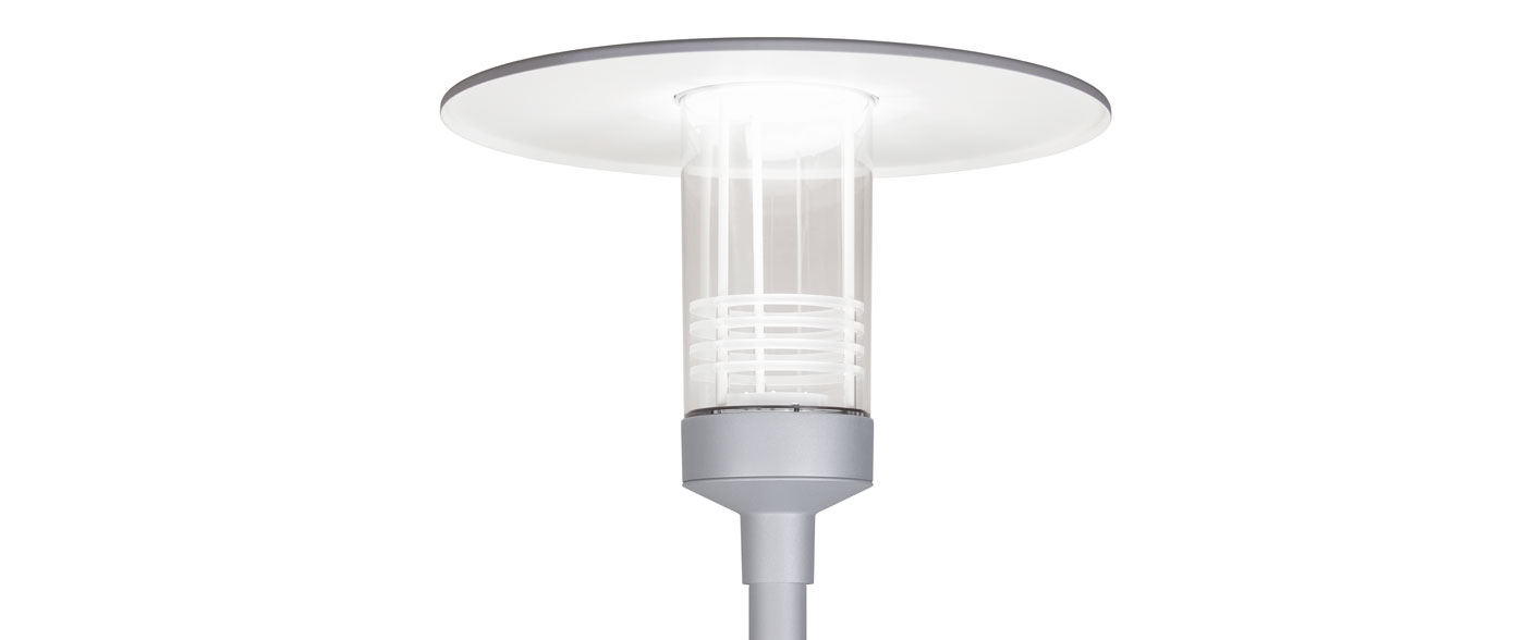 13637 Vivita & Verda 13637A post top park luminaire with shade in modern design. Symmetrical or asymmetrical light distribution. The acrylic décor-rings adds a visible variation. CLO for output consistency as standard.