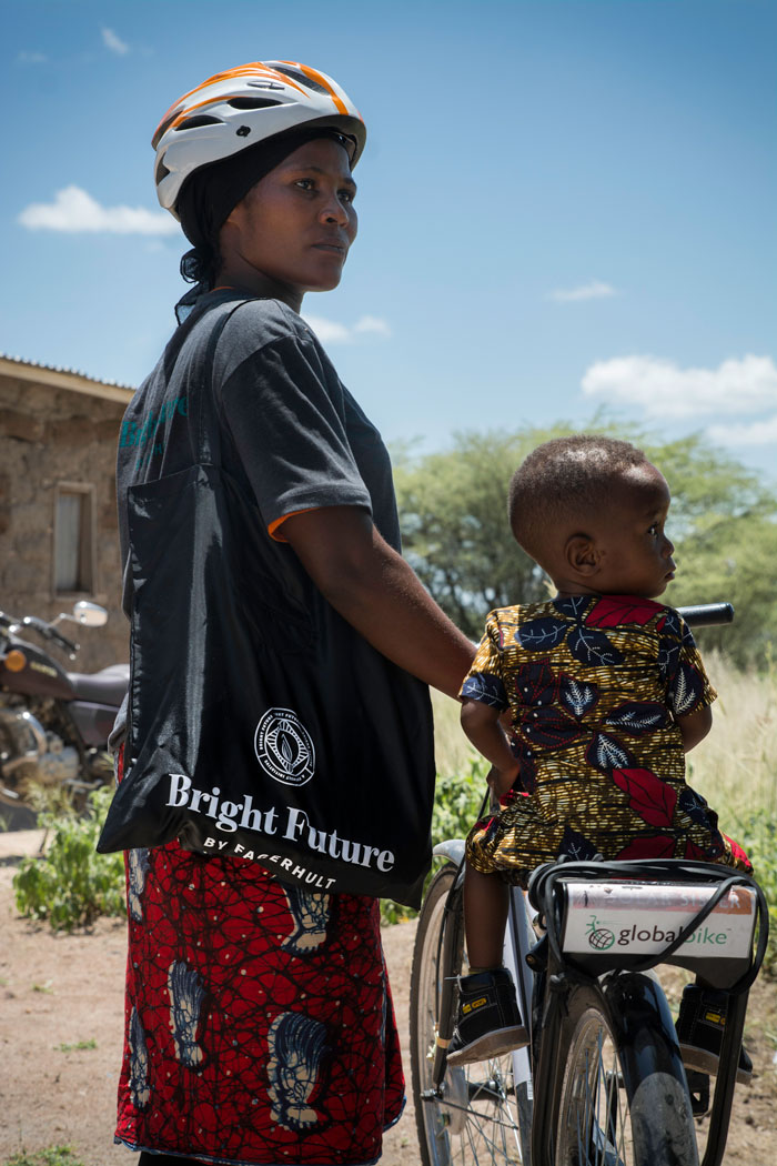 In the capacity of Bright Future Ambassadors, we’re visiting a team of solar entrepreneurs in the village of Muhunze, four hours’ drive from Lake Victoria in northern Tanzania. The public electricity grid doesn’t reach this point, although several villages along the way have been electrified under an ambitious government project to supply every household in Tanzania with electricity by 2025. In the team of entrepreneurs, which consists of six women and the husband of one of them, we meet Siku Mwinuka, who has been selling solar lamps for two years.