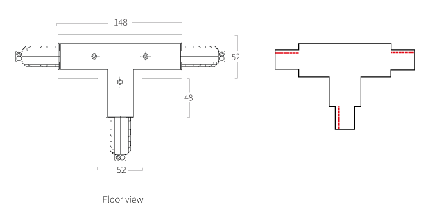 Vægbeslag til Control Track. Længde fra væg til centrum track: 80mm