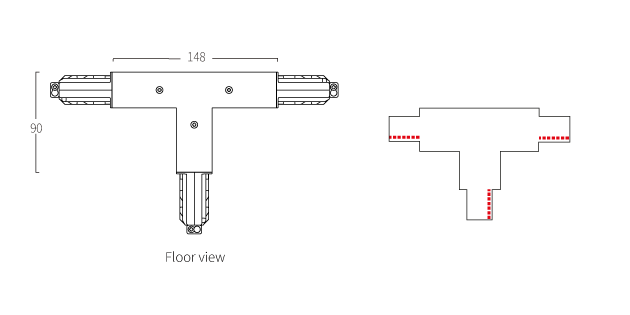 Vægbeslag til Control Track. Længde fra væg til centrum track: 80mm