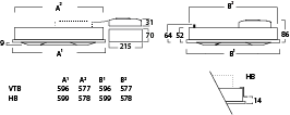 HB – til nedhængte lofter med skjult bæreprofil, kun symmetrisk fastgørelse af loftsplade (tykkelse 20–22 mm). Ved faste lofter kompletteres med ophængningsbeslag, se tilbehør.