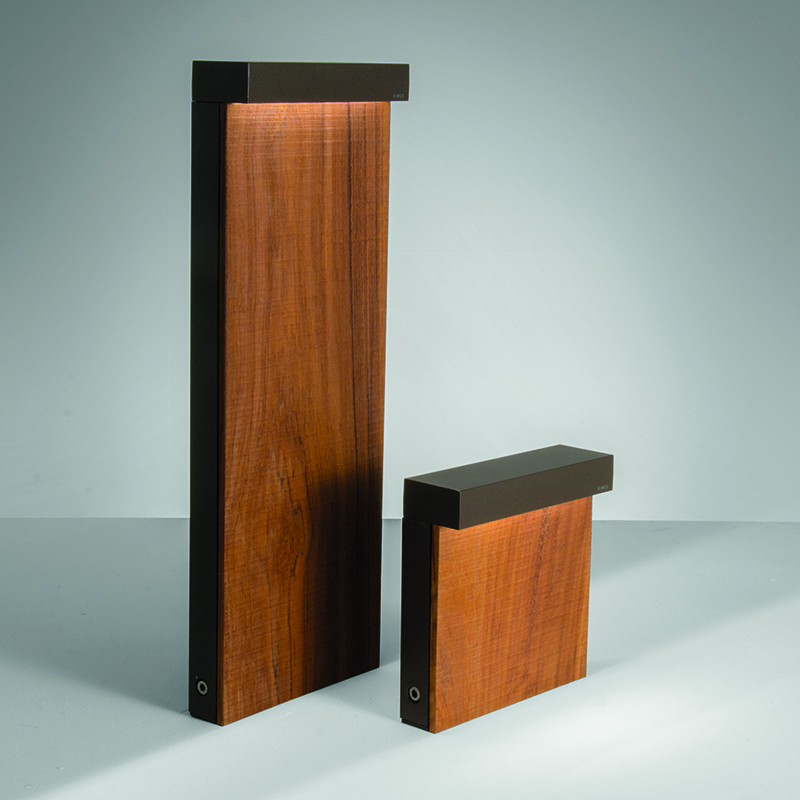 Ekstruderet aluminiumsprofil. Armaturhus i støbet korrosionsbestandig aluminium. Pulverlakeret, dobbeltlag, for UV og vejrbestandighed. Olieret teak, tykkelse 8 mm. Hærdet glas. Skruer i rustfri stål. Silikonetætninger.