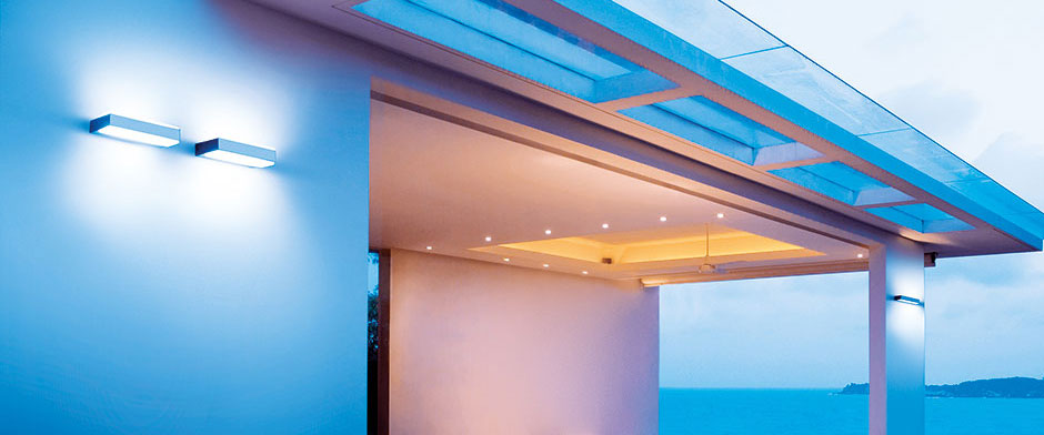 Fås med nedlys eller op-/nedlys. Armaturhus i trykstøbt og ekstruderet aluminium med høj korrosionsmodstand. Pulverlakeret, dobbeltlag, for UV og vejrbestandighed. Hærdet og ætset dekorativt glas. Skruer i rustfri stål. Silikonetætninger.