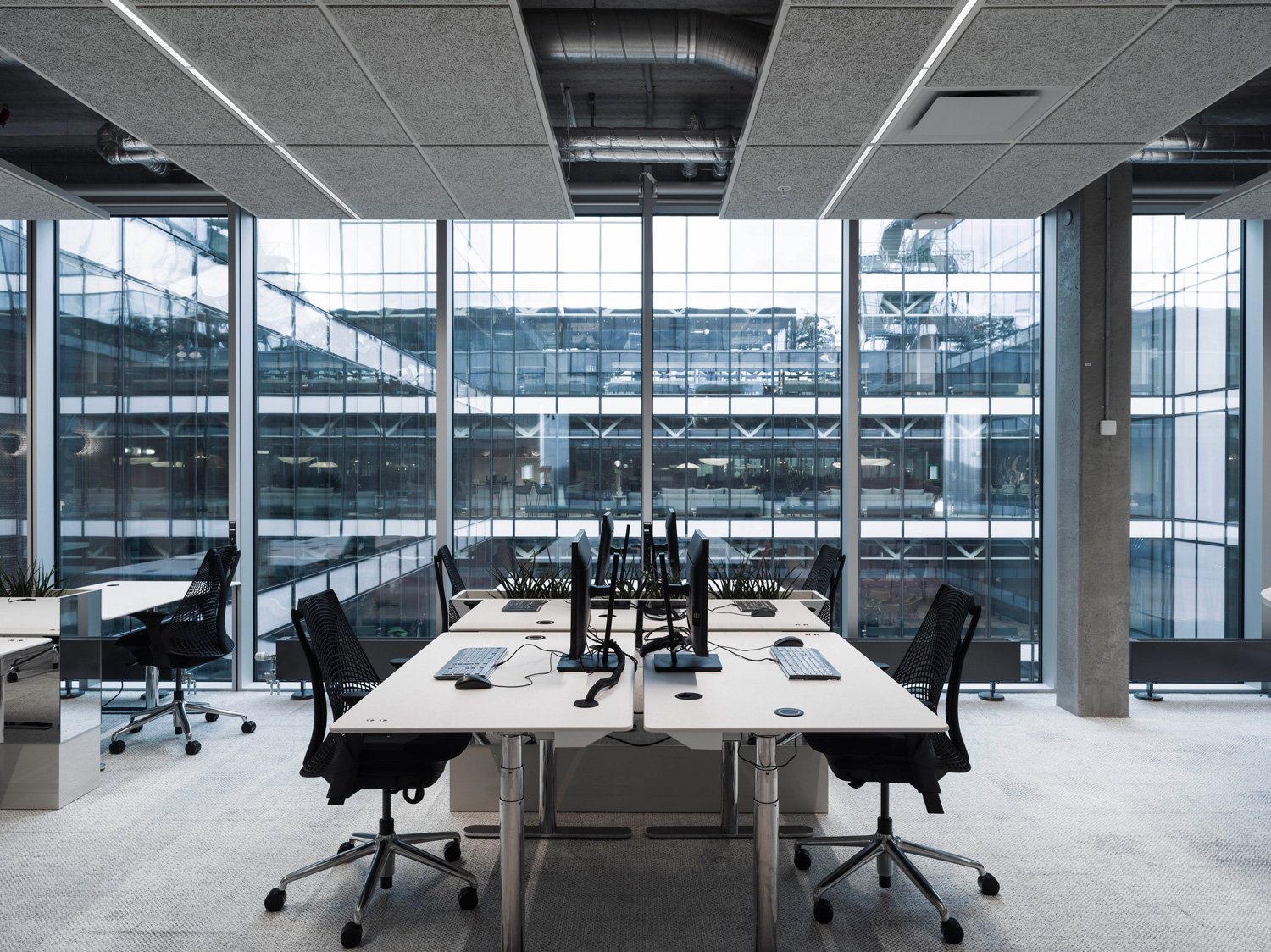 De store glasfacader afspejler den omkringliggende by og skaber et dynamisk indeklima. Et smart styresystem måler mængden af dagslys, så den kunstige belysning reguleres og supplerer det naturlige. Alt lige fra belysning og ventilation til varme og vand styres via Platinans styresystem, som registrerer brugernes bevægelsesmønstre.