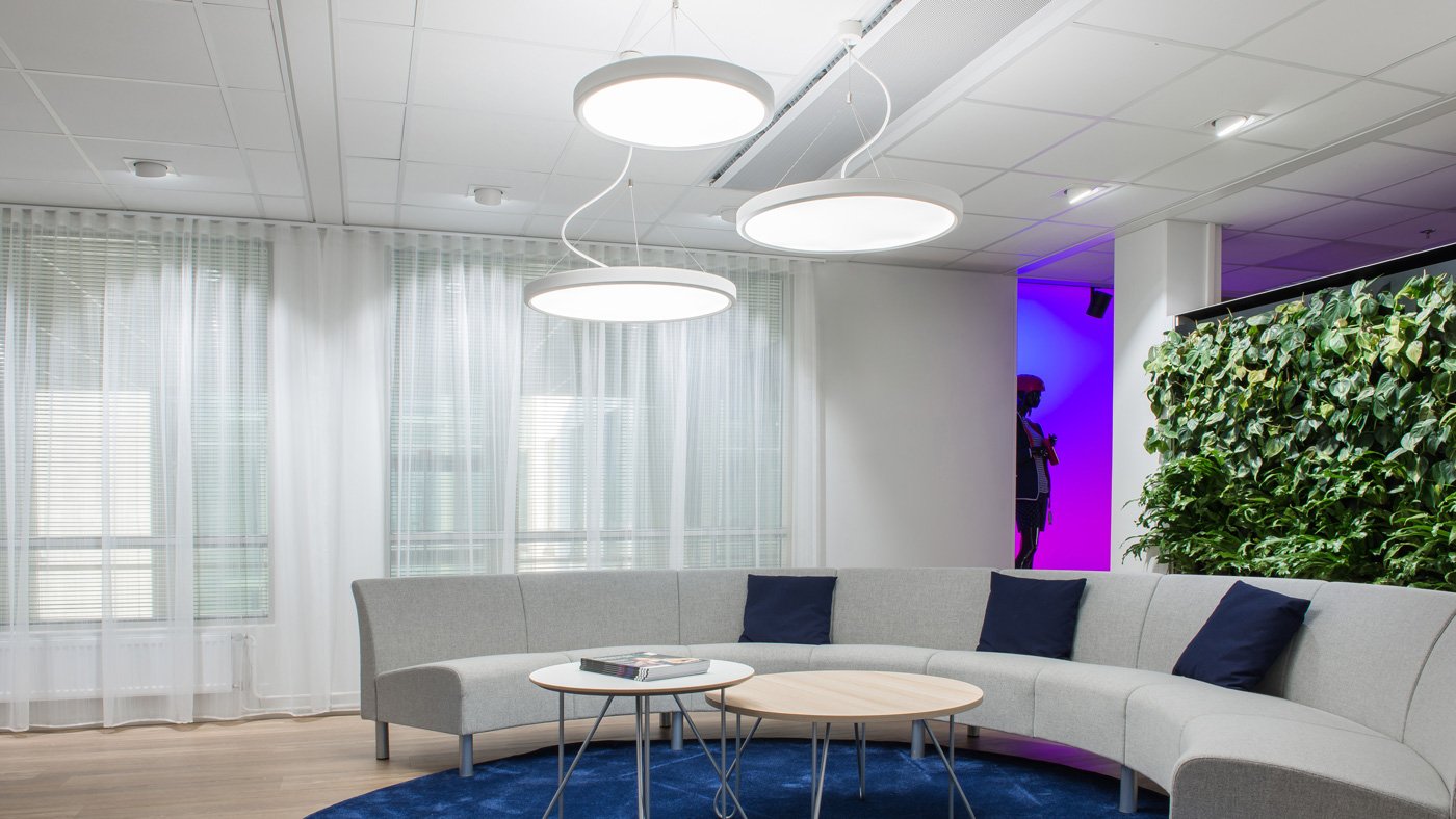 Als Beleuchtung über Arbeitsplätzen ist Pozzo Direkt/Indirekt eine effektive und persönliche Arbeitsleuchte. Das indirekte Lichtelement verstärkt die Umgebungsbeleuchtung und wird durch Pozzo Scale Direct Opal in den Pausenbereichen ergänzt.