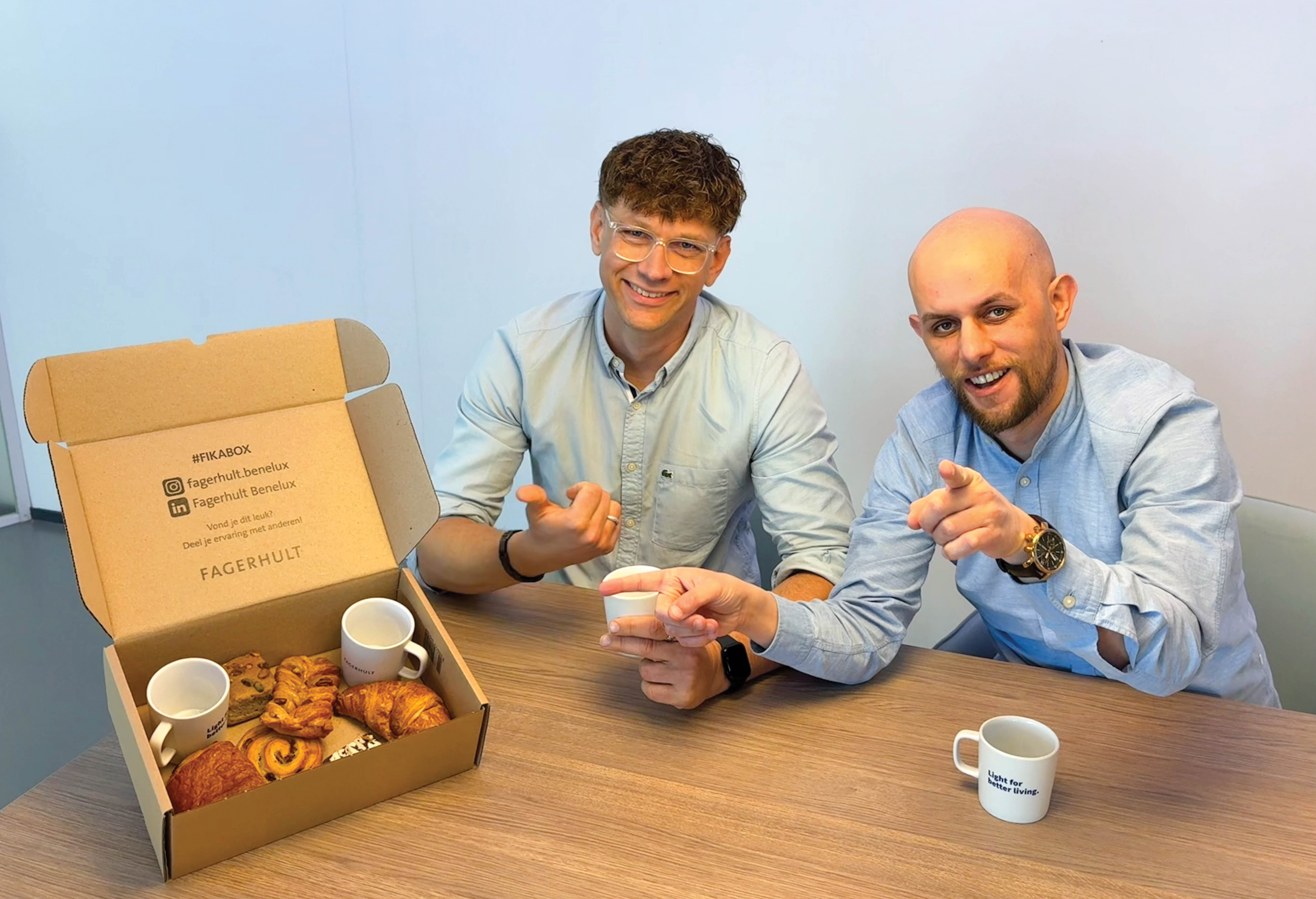 Unsere Kollegen Marcel oder Shpetim bringen persönlich die kostenlose Fikabox mit Gebäck bei Ihnen vorbei. Genießen Sie die Leckereien, wann immer Sie wollen. Bei dieser Gelegenheit stellen wir Ihnen Fagerhult vor, und zeigen Ihnen, wie wir zusammen Ihre Bauprojekte lichttechnisch auf ein neues Level bringen können. Der Termin ist unverbindlich, informell und freundlich.