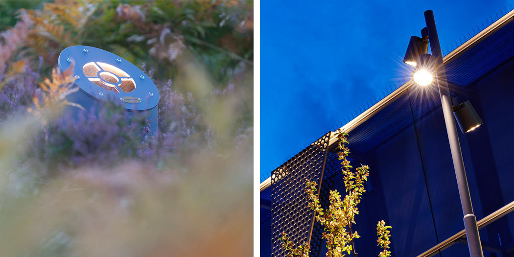 Both On Ground and PoleLITE are ideal for directional lighting. On Ground is a robust ground luminaire and the flood light PoleLITE can easily be mounted on a post – new or existing.