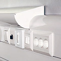 Aluflex 9 is equipped with the desired number of heavy and low current outlet sockets. The outlet sockets are fitted in the equipment bracket, type click-fix, which is snapped onto the front edge of the bottom section. The front cover can be easily dismantled without affecting the installations in the panel. The panel can be equipped with different national standard outlet.