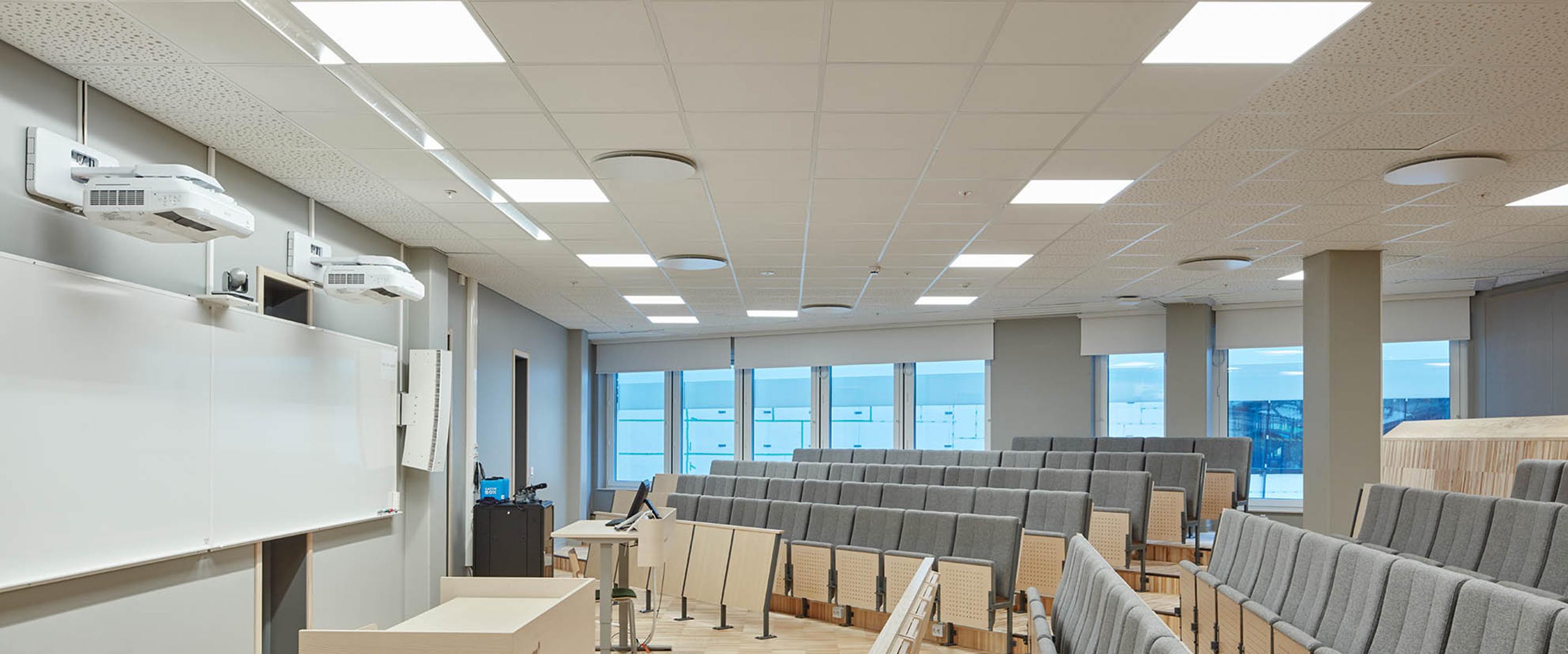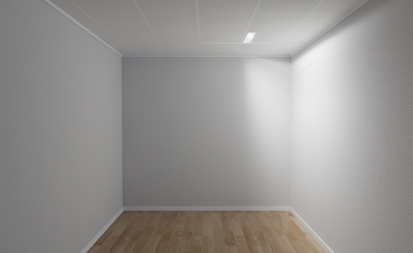 224 Gondol 224A recessed luminaire for suspended ceilings with visible T-bars. The luminaire creates even, glare-free, vertical lighting to achieve good visual comfort.