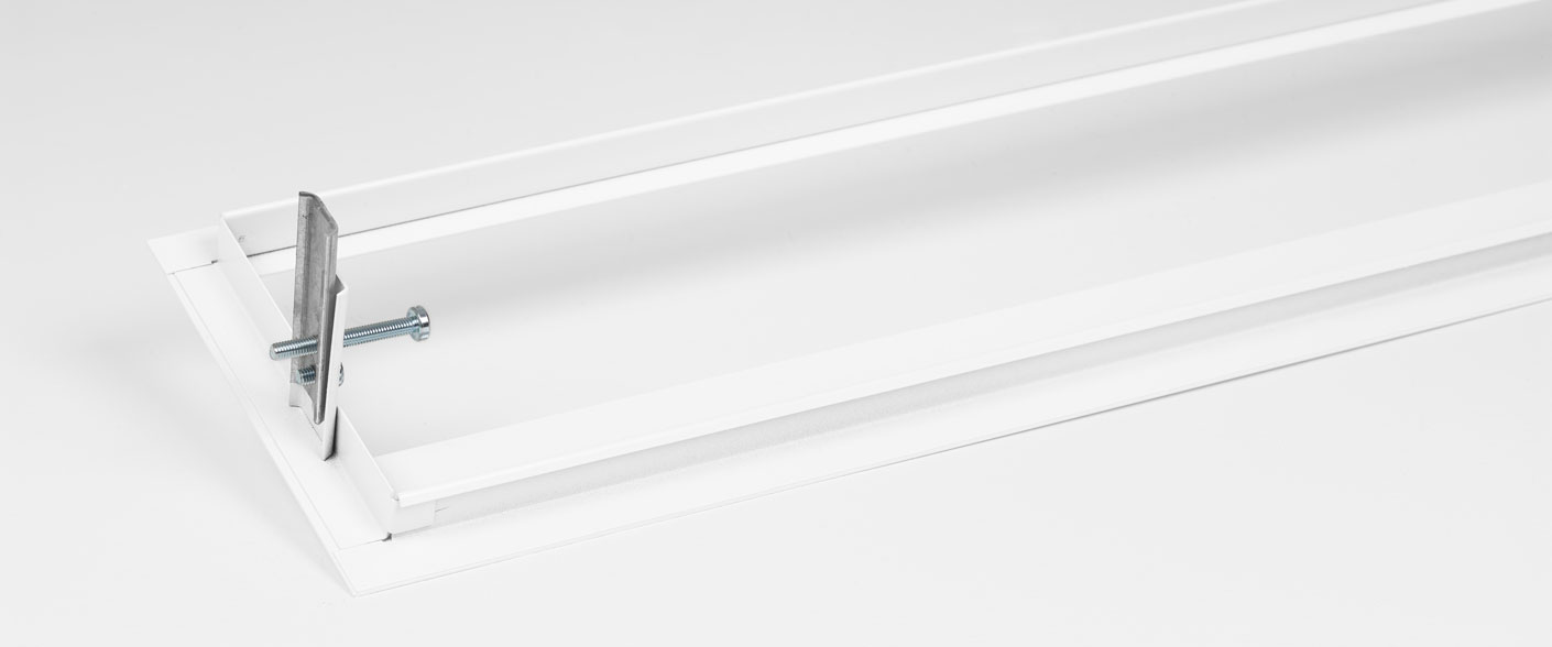 Recessed mounting – recessed mounting in suspended ceilings with visible T-bars. Also approved for recessed mounting in ventilated areas.