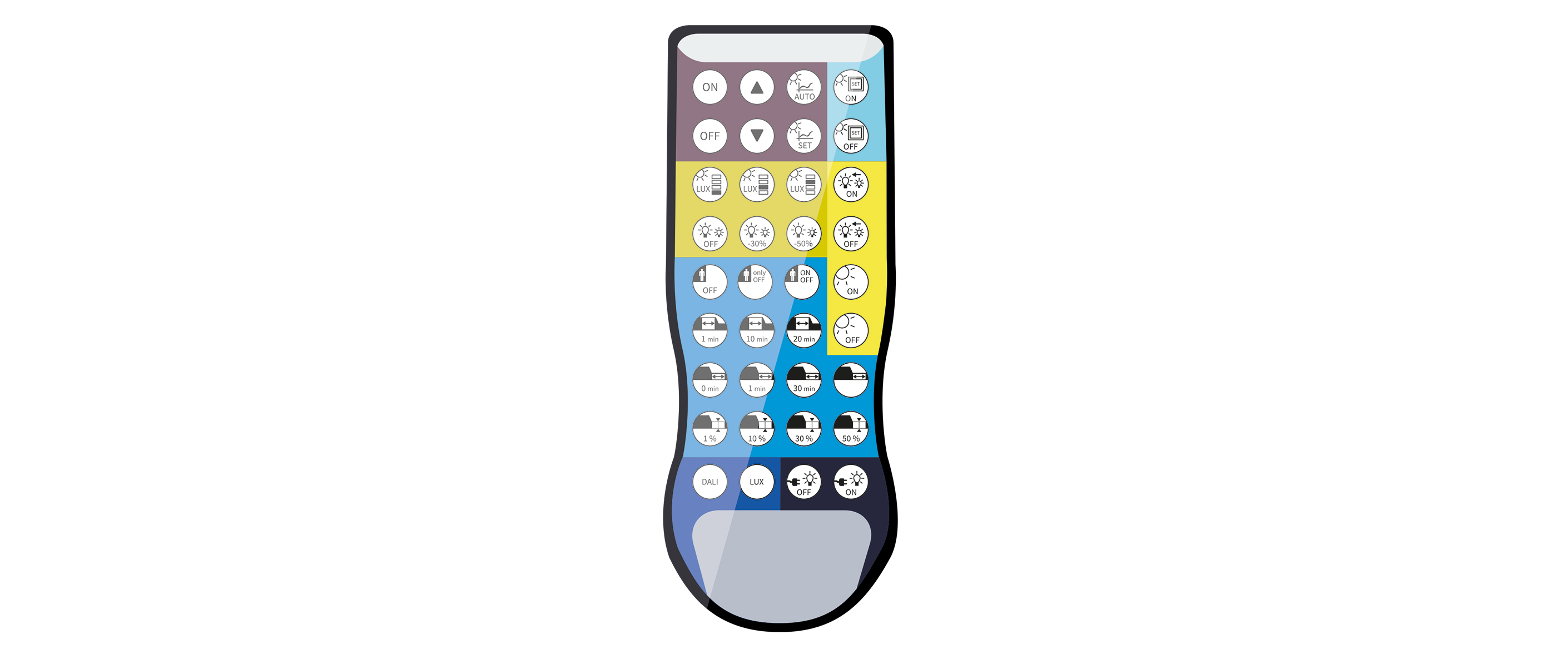 Organic Response – PIR sensor with presence and daylight control. All luminaires have master/slave functionality with IR communications.