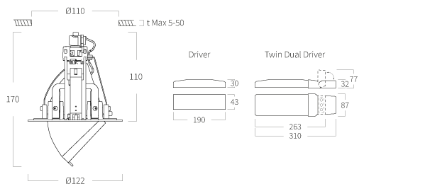 Twin Driver can be used (1 Driver that powers 2 luminaires.)