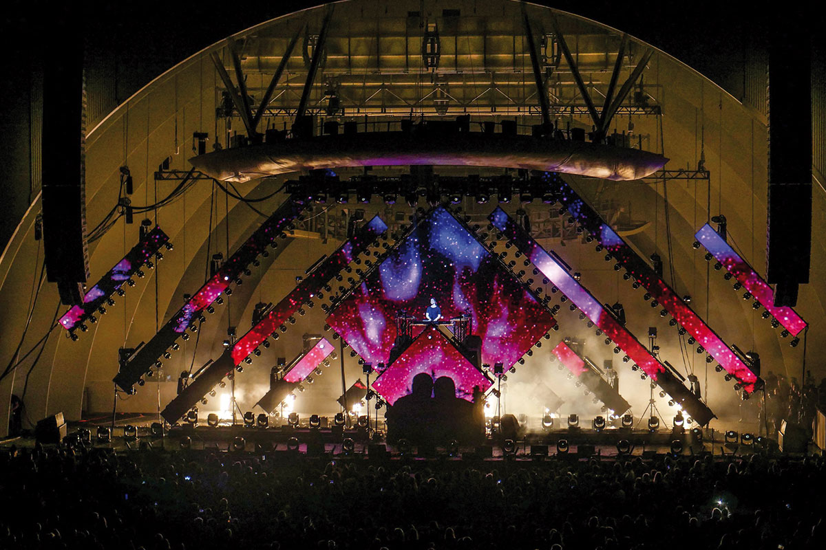 The rampant development of LED technology has brought new possibilities to create spectacular light shows. When directing Kygo’s two-night sell out at the famous Hollywood Bowl, Alexander had 188 moving LED fixtures in action dispersed over flown trusses.