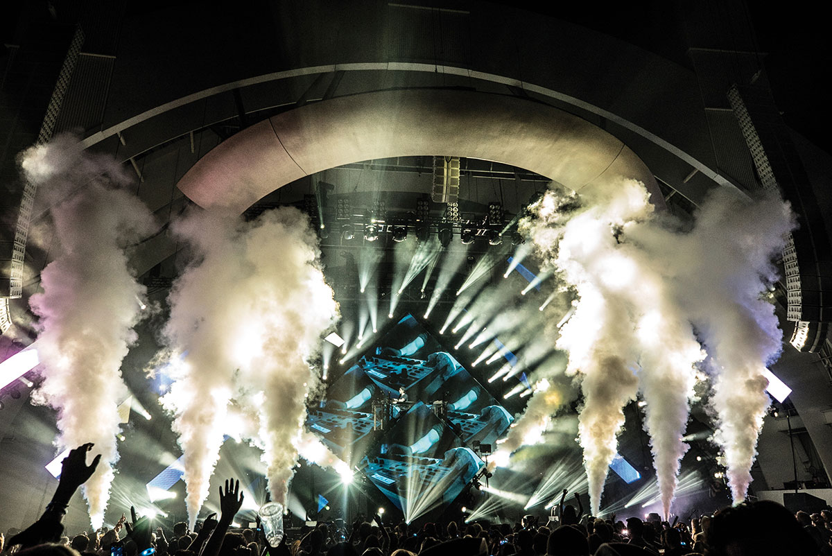 ”Traditionally, if you’re going to a concert with, for example, Bruce Springsteen, you’re there to see and to hear The Boss. That’s it and you’re happy with that. But when attending this kind of event, you’re not there for the artist only – you want more. You want lights, moving pictures, special effects and pyrotechnics. You want an experience that blows your mind. That’s why I don’t call them DJs, I see them as producers and directors”, Alexander says.