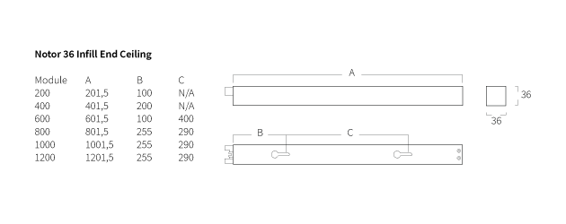 Sovitepala 1000 mm, katto, Opal, pääte.