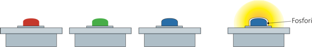 Punaisiin, vihreisiin ja sinisiin ledeihin perustuvaa ohjausta kutsutaan yleisesti RGB-ohjaukseksi. Valkoinen valo muodostetaan yleensä lisäämällä siniseen diodiin kerros fosforipohjaista loisteainetta. Eri fosforikoostumuksilla saadaan aikaan eri värilämpötiloja.