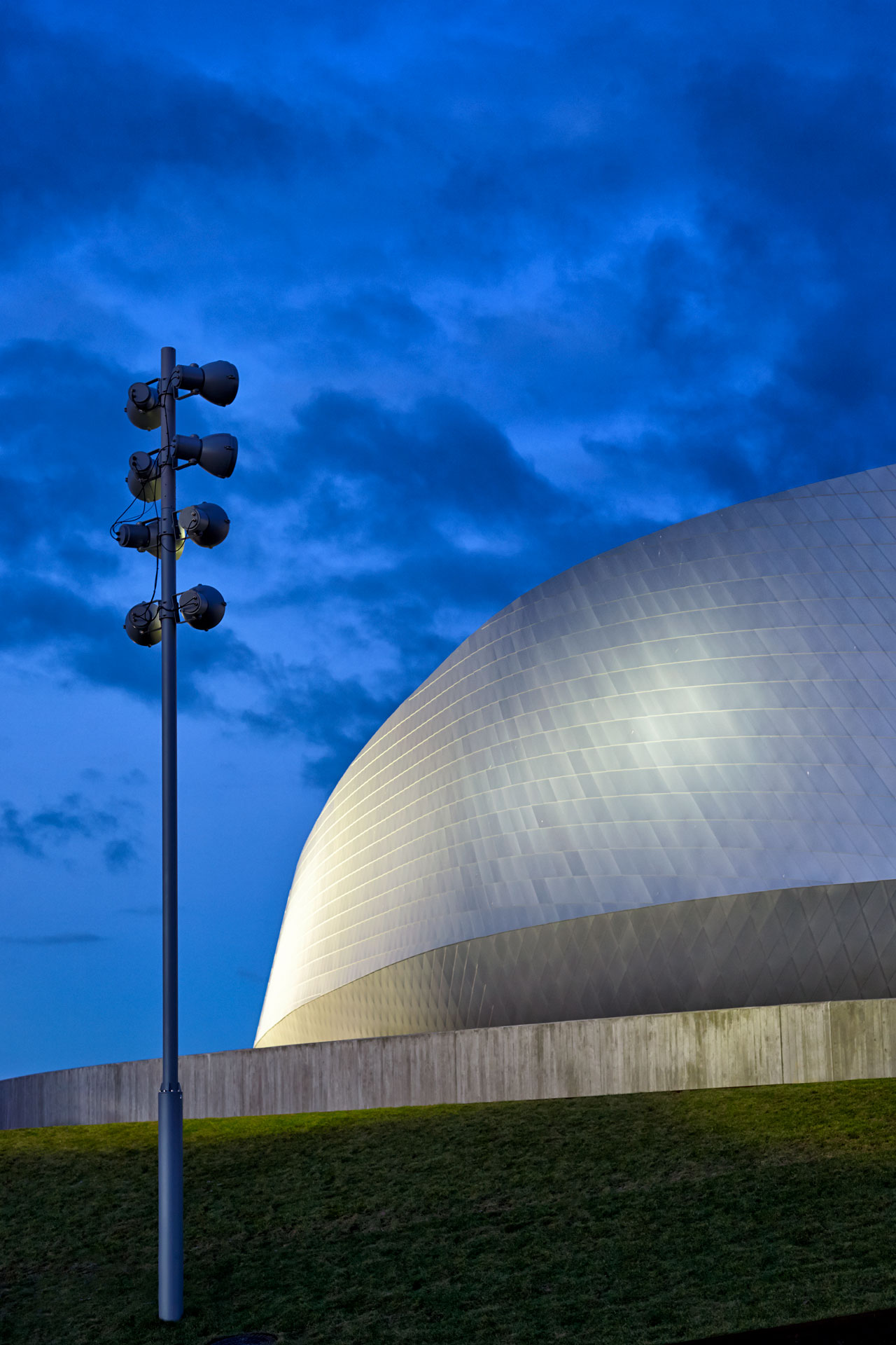 The Blue Planet is the largest aquarium in northern Europe, with more than 20 000 animals living in 7 million litres of water. From the outside, it’s all about organic, curved lines beautifully enhanced by the lighting. The lights attract the visitors, leading them through the vast parking space surrounding the sphere. It's a conspicuous landmark, effective but still carefully lit up not to conflict with the nearby airport.