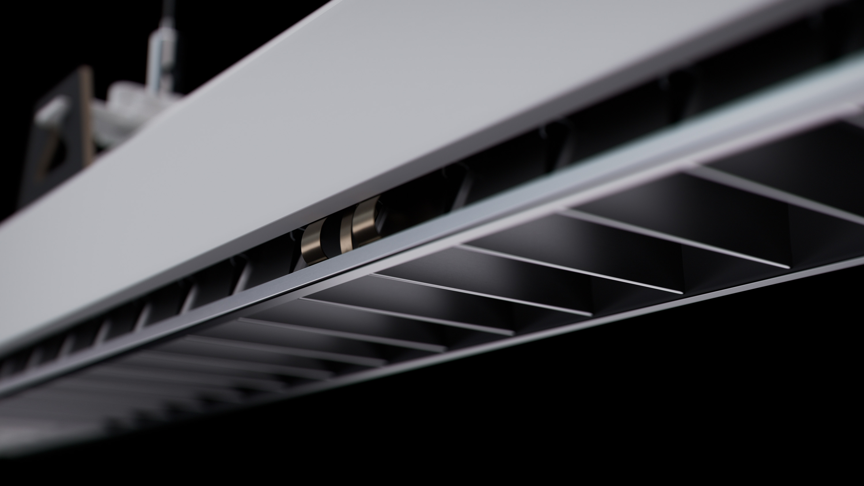 Le lancement comprend le luminaire suspendu Wrapped de 900 mm. La faible quantité de matériau en fait un choix vraiment durable, car il est aussi performant qu'un luminaire général de 1200 mm dans de nombreuses applications. Il est disponible avec la grille Beta Opti et a une distribution lumineuse directe et indirecte de 50/50. La famille de produits sera complétée par d'autres produits en 2026.