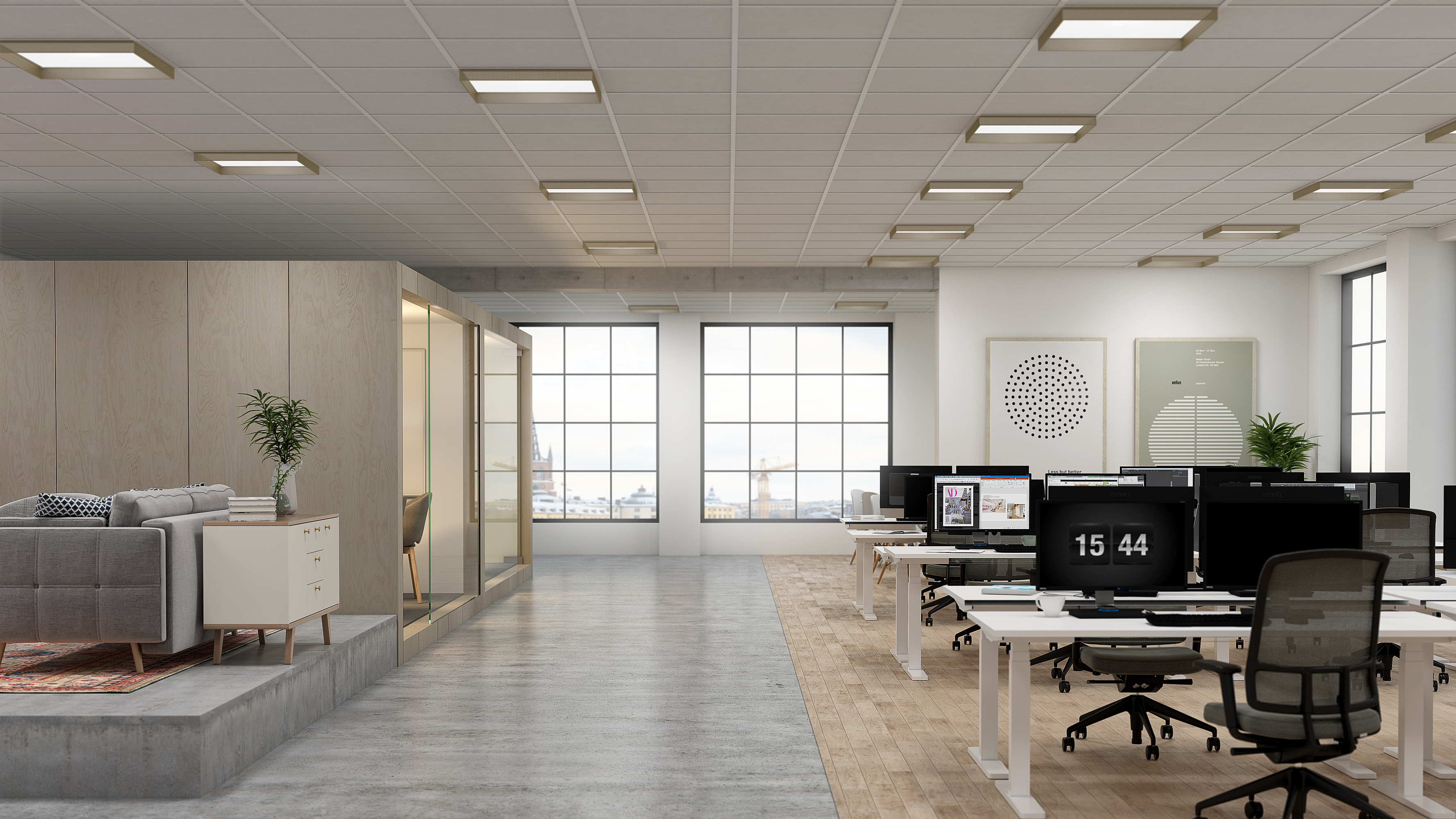 Cadre suspendu perforé reduisant l'éblouissement.