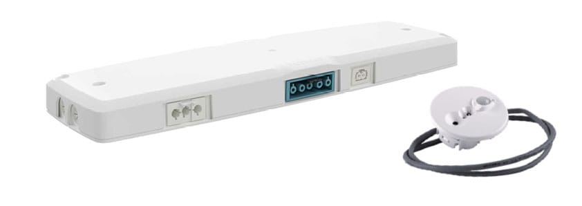Boîtier externe à dégagement rapide avec connecteurs Wieland et capteur qui permet un changement automatique de température de couleur pendant la journée pour les luminaires Tunable White équipés d'Organic Response.