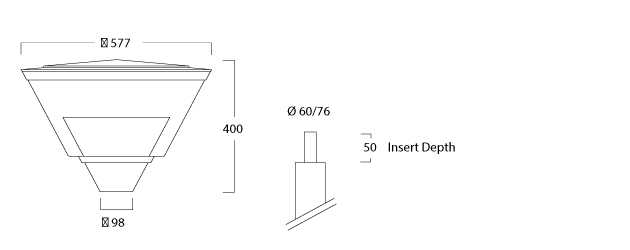 Luminaire pour montage sur montant avec partie supérieure de montant Ø 60 mm ou Ø 76 mm.