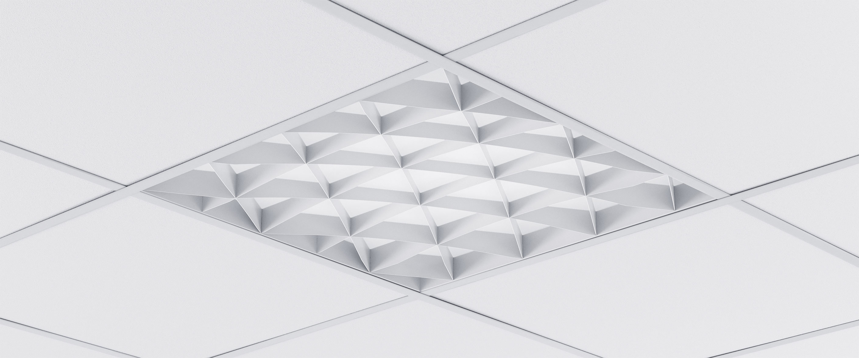 Adapté à tous les types de faux plafonds, ce luminaire encastré conçu pour les bureaux existe en différentes tailles. Le diffuseur Delta apporte une grande efficacité d'éclairage et un confort lumineux optimal. Profondeur d’encastrement : 23 mm.