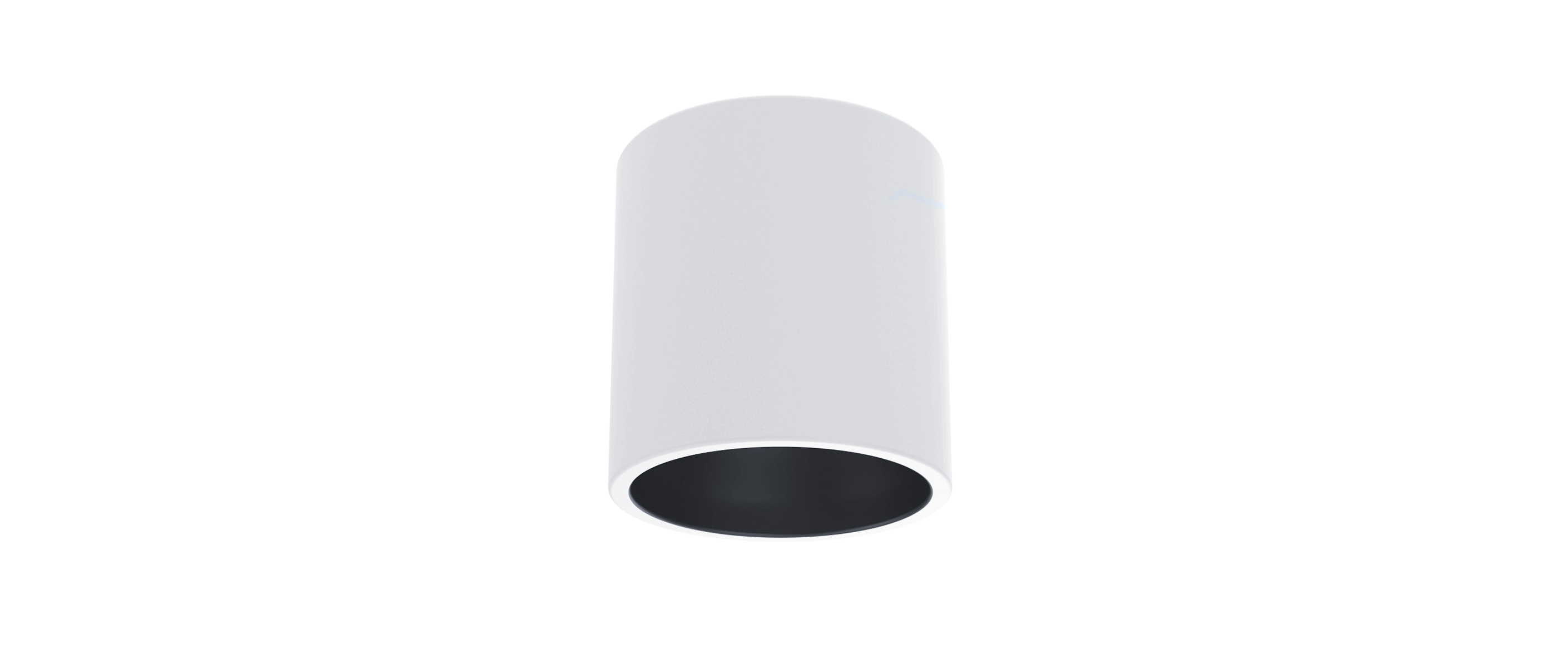 Corps du luminaire en aluminium moulé et plastique PBT blanc. Sous-face du réflecteur visible en plastique PBT blanc (RAL 9003).