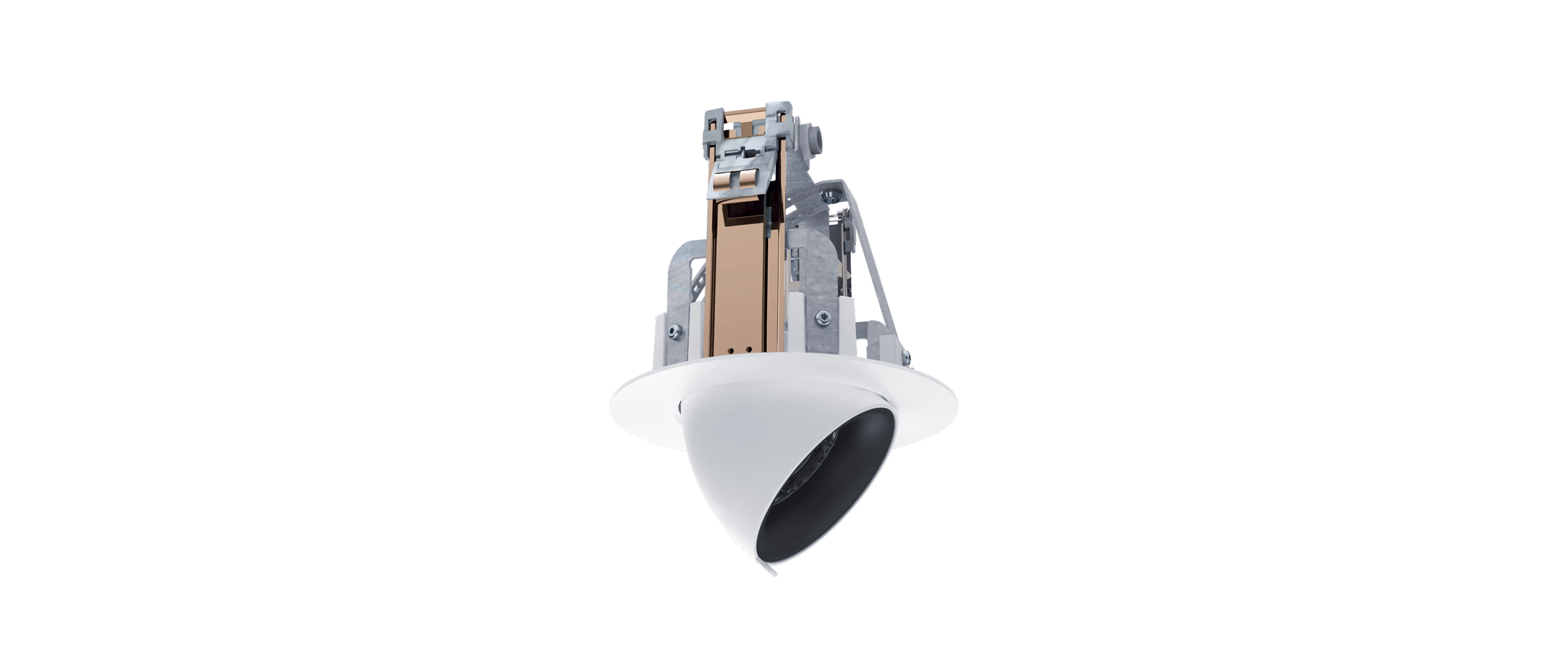 Encastrement dans faux plafonds. Espace avec ou sans ventilation. Ressorts de montage solides inclus. En cas de montage dans un faux plafond souple, une plaque de montage doit être utilisée. Le boîtier du ballast est séparé pour un montage rapide et flexible.