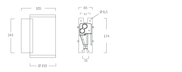 Borne de raccordement 3x2,5 mm² ou 5x2,5 mm² avec modulation de l’éclairage. Ballast intégré sur la fixation murale pour un montage flexible. Raccordement ultérieur possible.