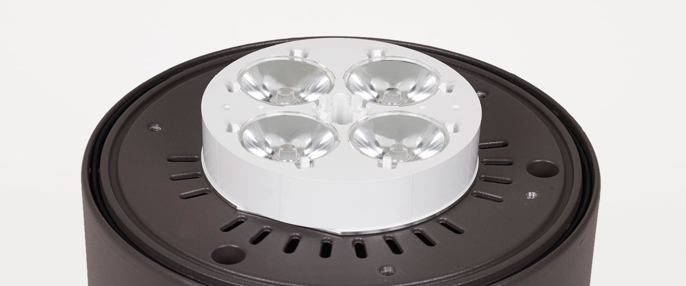 Le corps et le système de refroidissement sont en aluminium moulé. Le diffuseur est en polycarbonate stabilisé aux UV et résistant aux chocs. Le driver est intégré dans le luminaire.