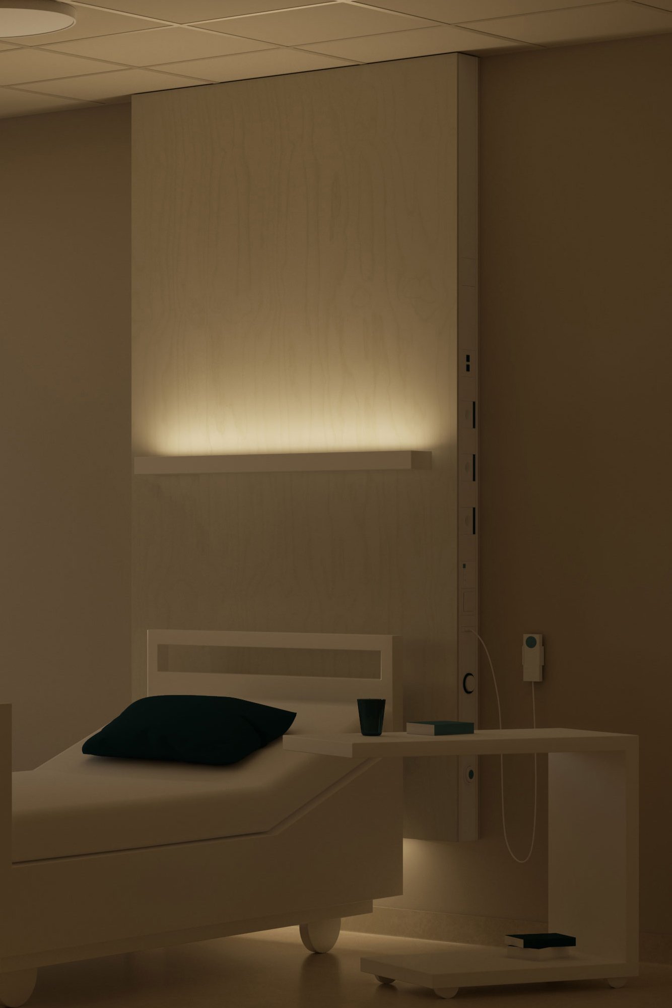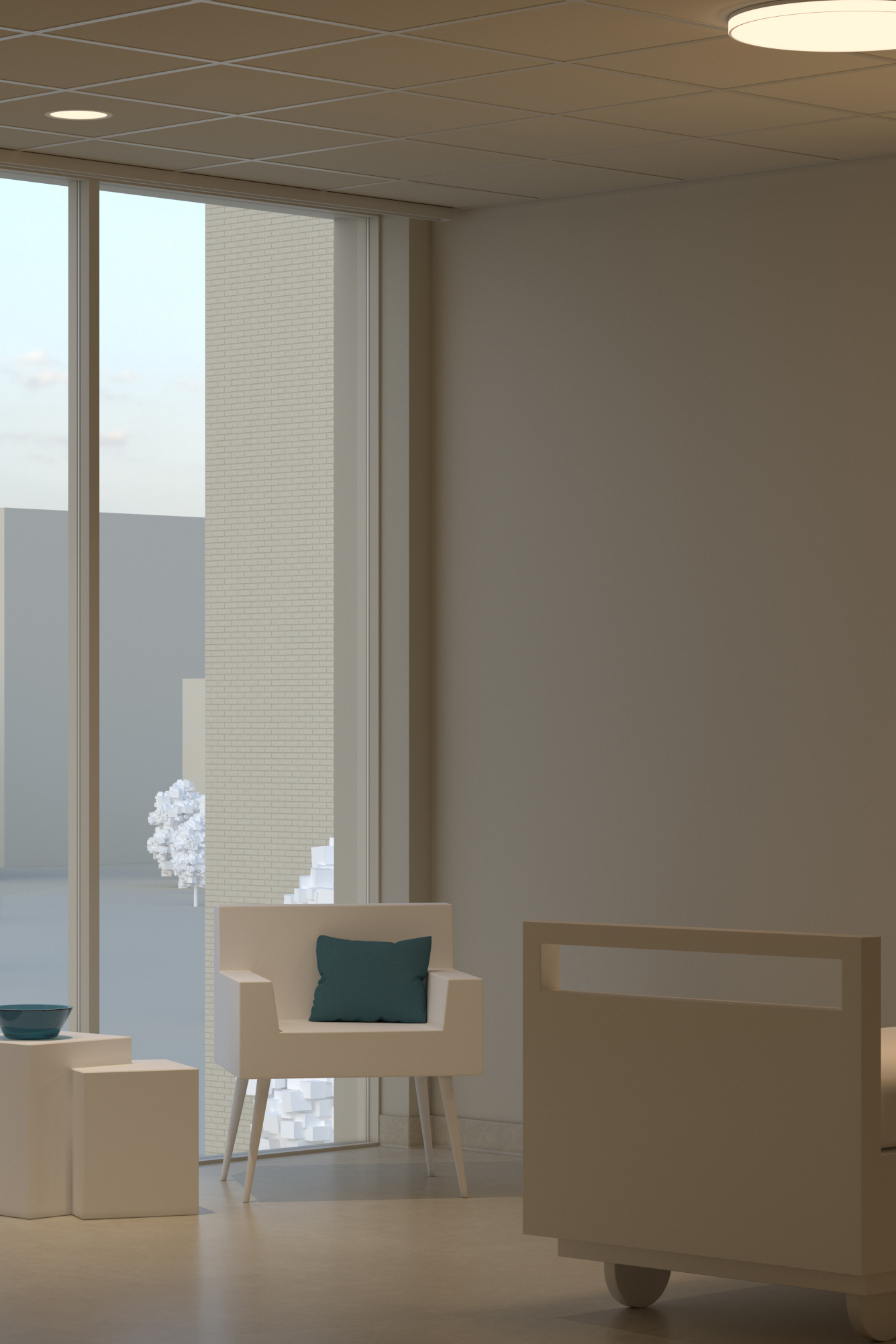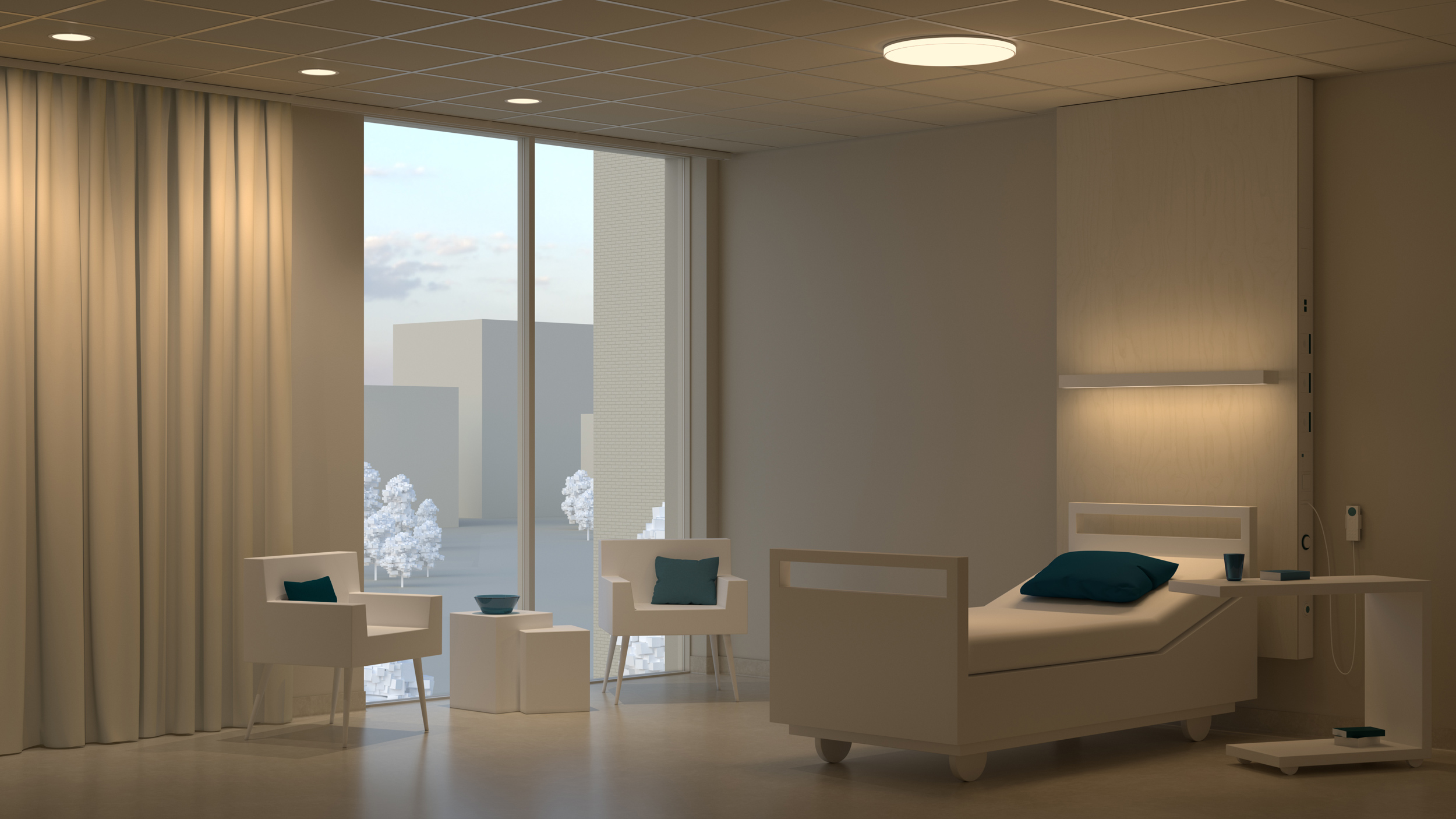 An individual patient room can sometimes become the patient's only fixed point during a traumatic or turbulent time. This makes it important to ensure that the room is as pleasant as possible. Such rooms sometimes have to accommodate advanced technical equipment while offering the chance to relax and socialise with relatives. Accordingly, one of the roles of the lighting in the patient room is to create a safe and pleasant environment that best promotes healing and recovery. The lighting should offer the best possibility of maintaining the circadian rhythm while creating a spatial context for the person staying in the room.