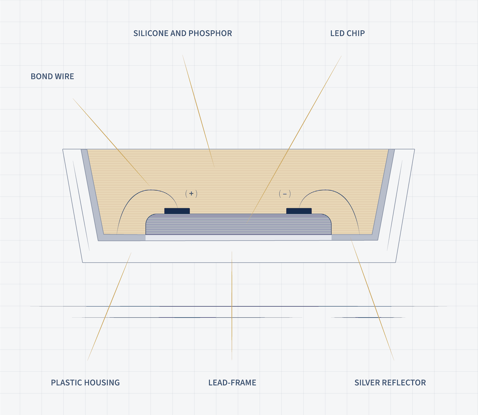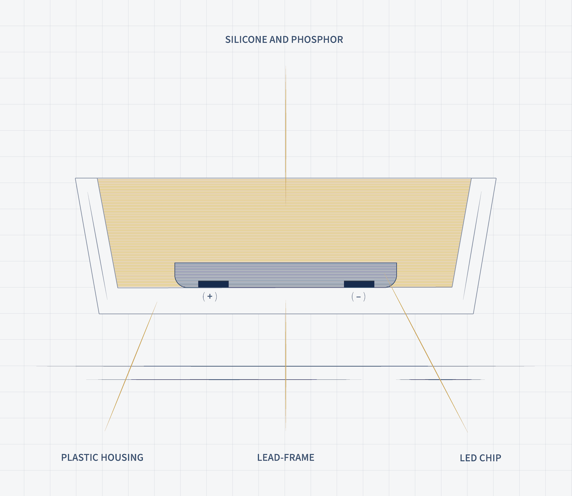 In a Flip Chip, the cake is simply turned upside down, with all the contact surfaces at the bottom of the chip. This allows the light to flow freely, and the chip operates more efficiently without interference. Placing the contact surfaces at the bottom also helps avoid potential sources of failure in the connecting wires. As a result, the Flip Chip technology delivers a product that is both more efficient and more robust.