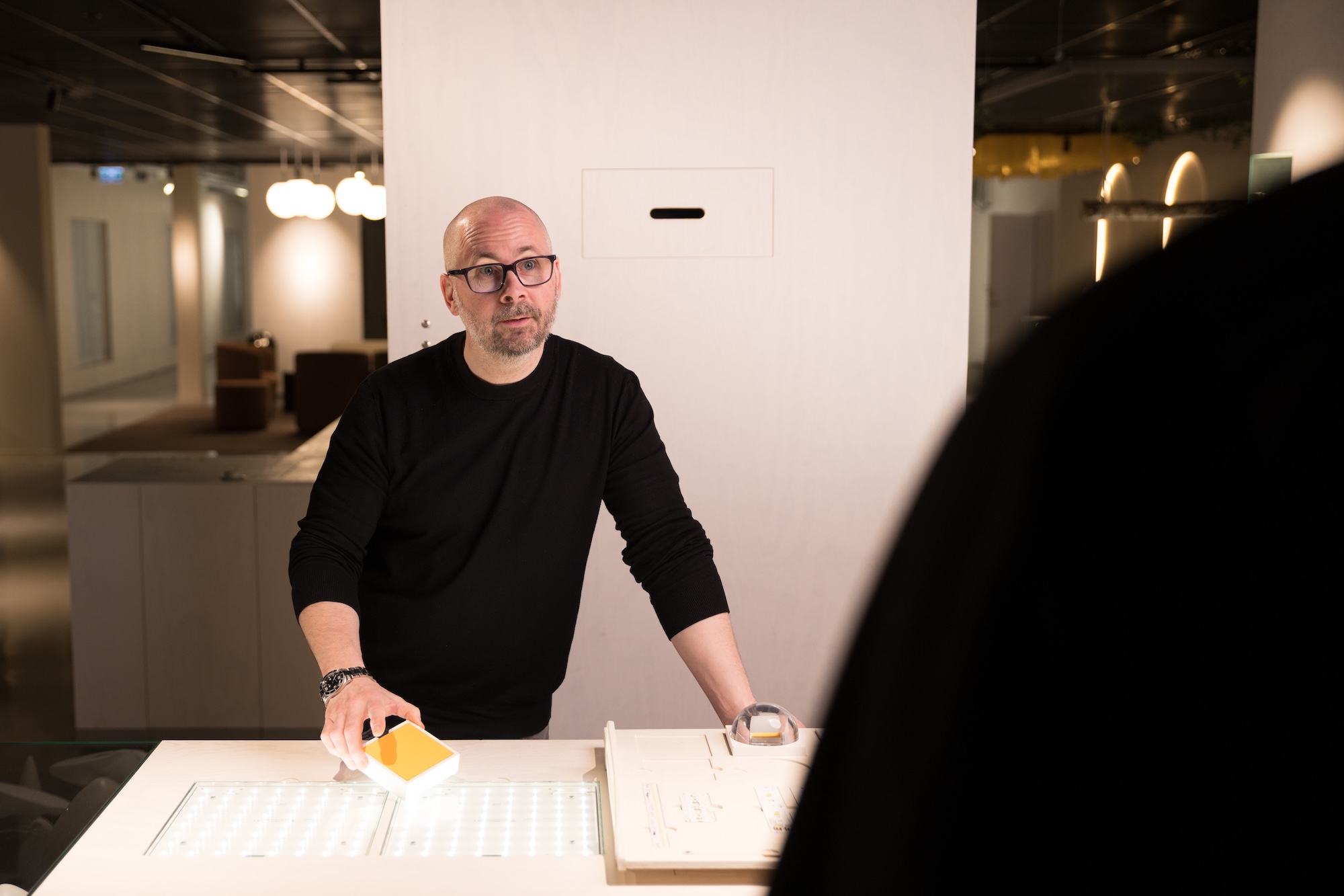 Marcus Fagerlind, Technical Manager for Smart Lighting at Fagerhult, at the Experience Centre in Habo, where lighting solutions are explored and demonstrated.
