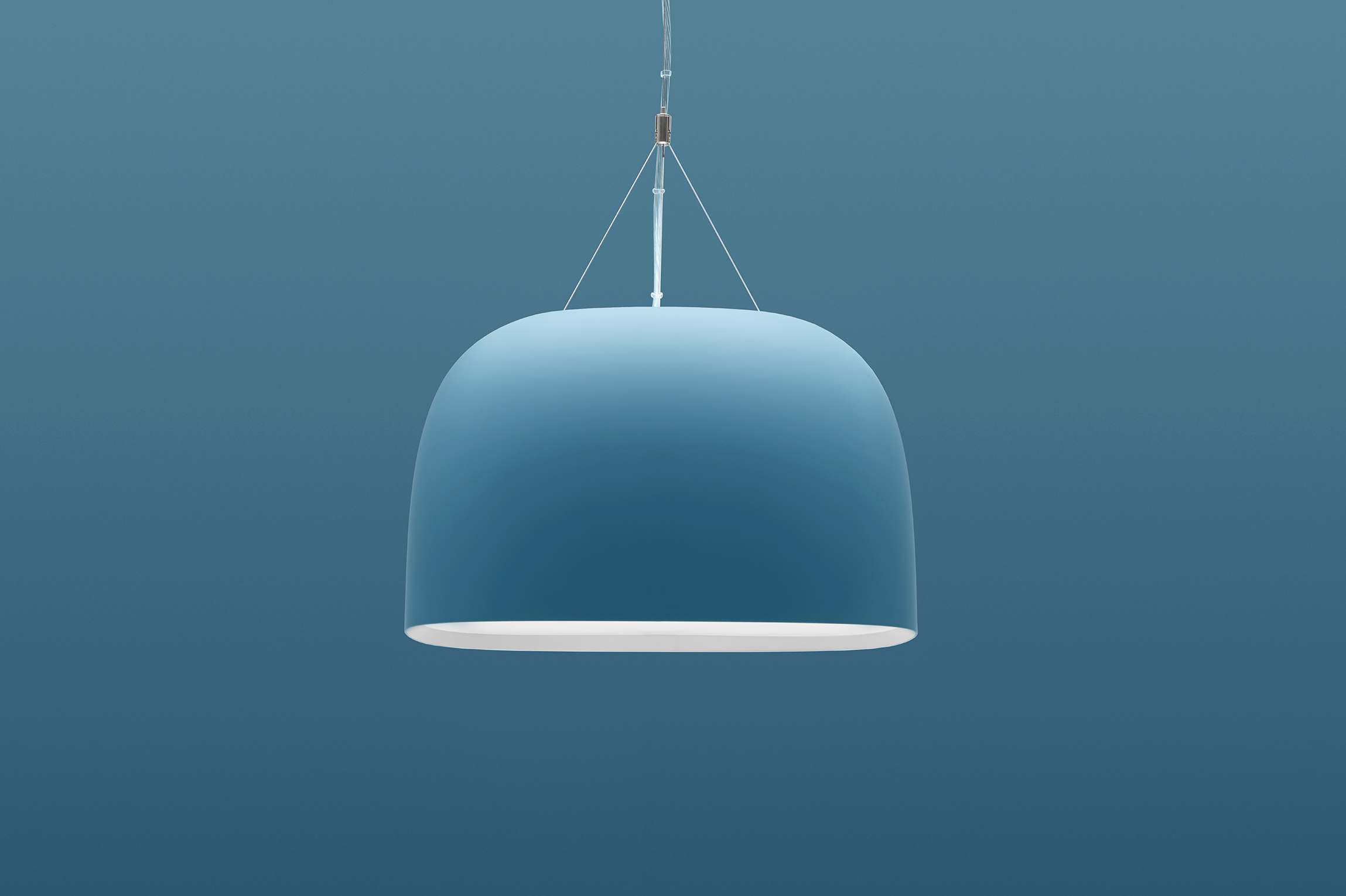 Armatuurbehuizing van kunststof, geëmailleerd in verschillende kleuren. Verkrijgbaar in twee maten, Ø 500 mm en Ø 700 mm.