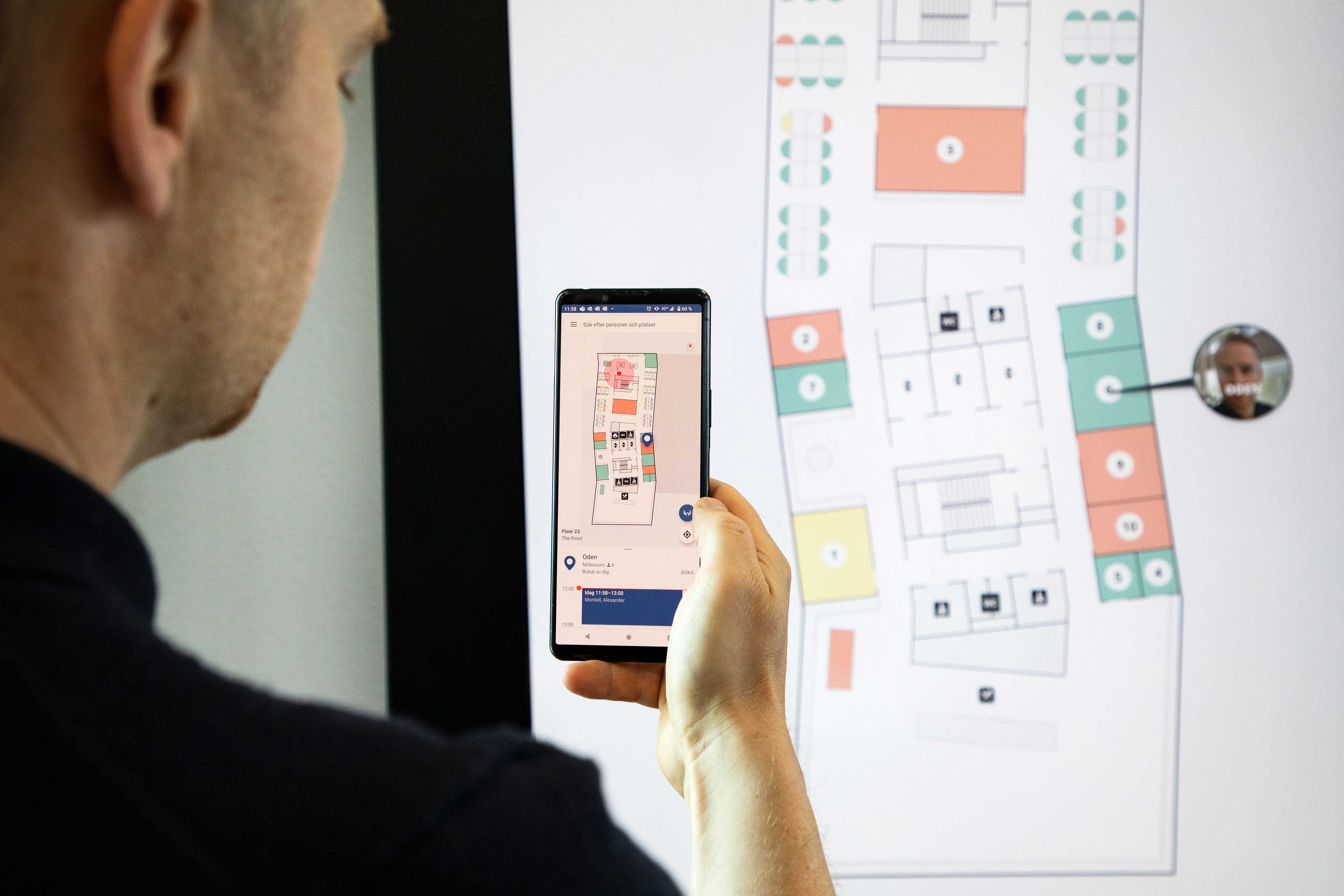 Lars-Gunnar vertelt dat Nimway oorspronkelijk ontwikkeld is als tool voor intern gebruik. ‘Rond 2008 waren er bij Sony Mobile in Lund (Zweden) 5.500 mensen in dienst, verdeeld over 13 verschillende locaties. Destijds was Sony pionier op het gebied van Activity Based Working en flexibele werkplekken. Een aantal designers binnen Sony ontdekte hoe lastig het was om uit te zoeken waar je precies moest zijn binnen de verschillende vestigingen. Het gevolg was dat mensen vaak te laat waren voor hun afspraak en ook moeite hadden om een vrije werk- of vergaderplek te vinden.’ Sony Mobile had in die tijd net GPS voor mobieltjes geïntroduceerd. ‘We konden dit nog niet binnenshuis toepassen maar binnen Sony was een groep onderzoekers bezig om een technologie te ontwikkelen waarmee dit wel mogelijk werd. De onderzoekers en de designers werkten samen om hiervoor een app te ontwikkelen. Dat was heel bijzonder, want apps waren toen nog niet zo gangbaar als nu.’ De tool was klaar in 2010 en kreeg de naam Sony Map.