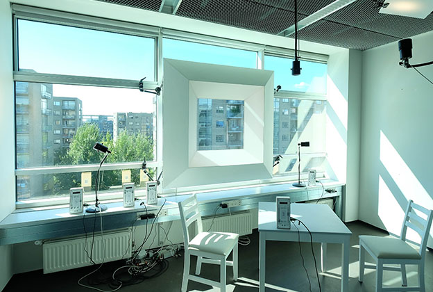 The software was implemented in two different test environments in form of full scale architectonical mock ups. In the different tests, the subjects carried out various tasks related to everyday life and office work, responding to the light experience.