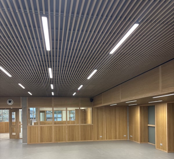 De klaslokalen zijn ingericht met een rustige, gelijkmatige lichtverdeling die vermoeidheid vermindert en een prettig visueel klimaat creëert. Heldere werkvlakken, zachte overgangen en minimale verblinding zorgen voor een comfortabele leeromgeving gedurende de hele dag.