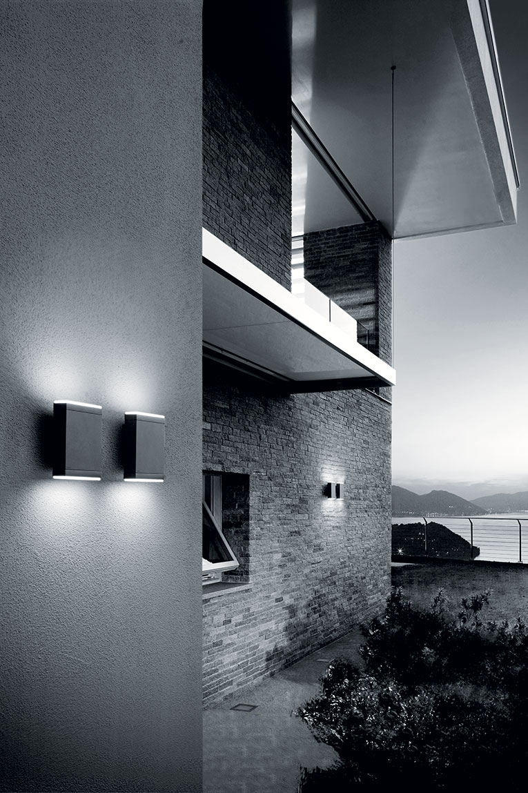 Fås med nedlys eller både opp- og nedlys. Stamme av presstøpt og ekstrudert aluminium med høy korrosjonsmotstand. Doble lag av pulverlakk for UV- og værbestandighet. Herdet og etset dekorativt glass. Skruer av rustfritt stål. Silikontetninger.