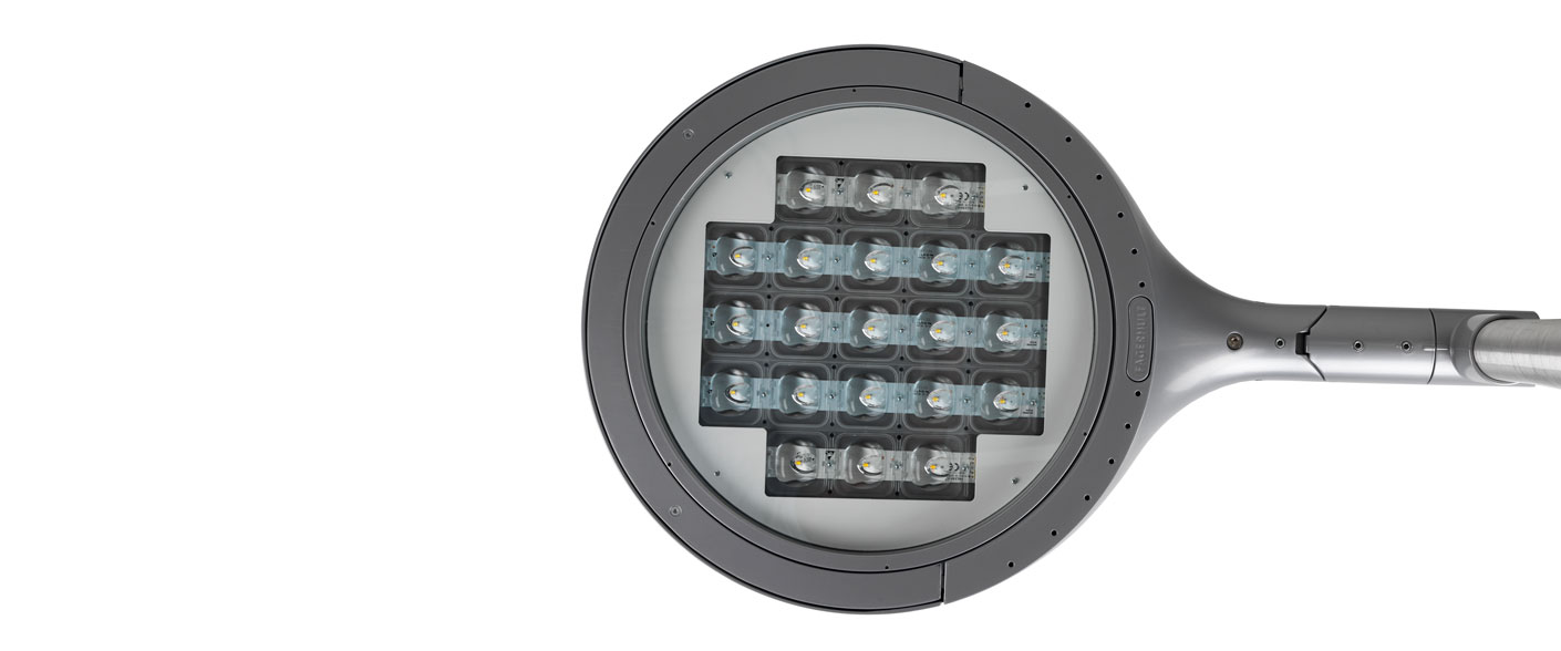1112 Vialume 1112En større og kraftigere mastearmatur i en myk og organisk form. AGC-linser gir ypperlige lysegenskaper og avansert optikk utviklet for veibelysning og større parkeringsanlegg. CLO sikrer samme lysmengde gjennom hele levetiden.