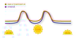 Idealet er ganske enkelt å imitere det naturlige lyset både i nivå og farge i løpet av dagen. Kaldt, intenst lys med en høy andel blått virker stimulerende, mens varmt lys er mer avslappende.