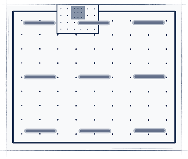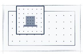 Et område på maksimalt 0,5 meter fra respektive yttervegg kan unntas fra beregningen, unntatt når et arbeidsområde forekommer innenfor denne sonen. På tilsvarende måte beregnes også størrelse på rutenett for vegger og tak. Her skal også et område på 0,5 m trekkes fra respektive ytterkant.