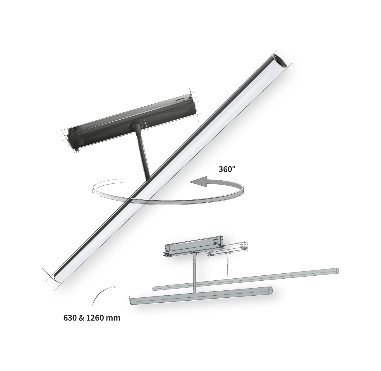 The Twister Line is a modern flirt with classic fluorescent design, but in a modern energy-efficient configuration. With the visual perception as a starting point, the luminaire is perfect for striking accent lighting. Thanks to the adjustable twist, you can continuously form new graphic patterns, geometric shapes and textures. Perfect for aesthetically enhancing a surface or reinforcing the brand identity of your premises.
